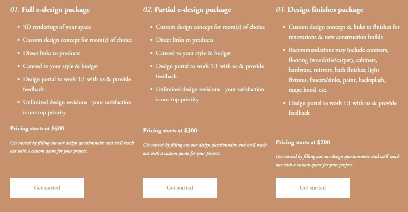 02. Partial e-design package (Link to products, floor layout) | Get started